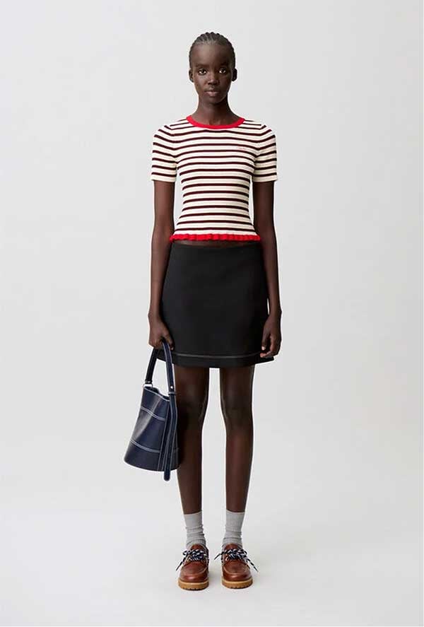 Strickwaren verflechten sich, Kreuzstiche skizzieren eine Karte, Streifen weisen den Weg. Jedes Outfit wird zum Beginn einer neuen Reise.